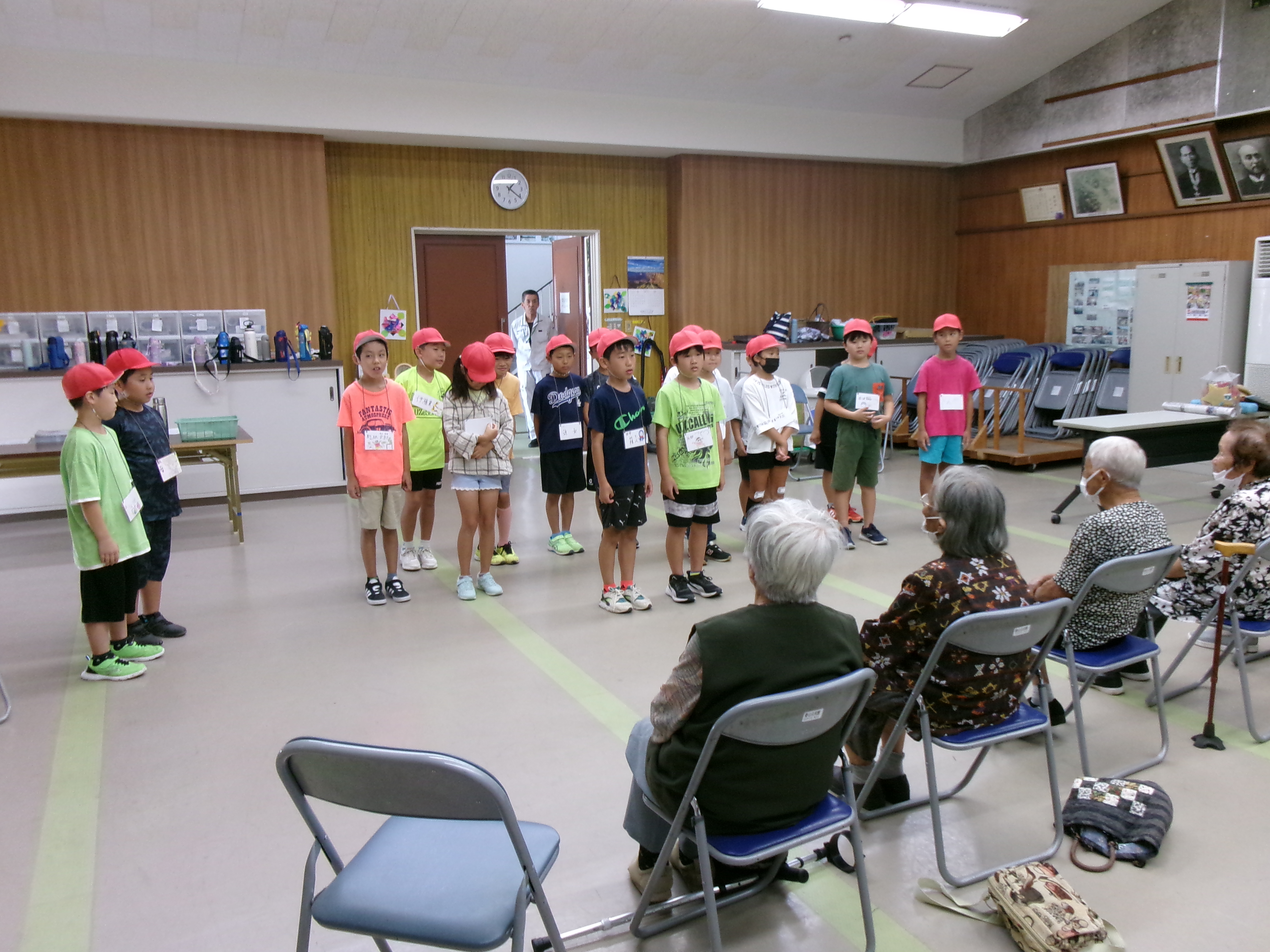 はじめに自己紹介をし、顔合わせをしました。校歌、赤い屋根の家を歌い、