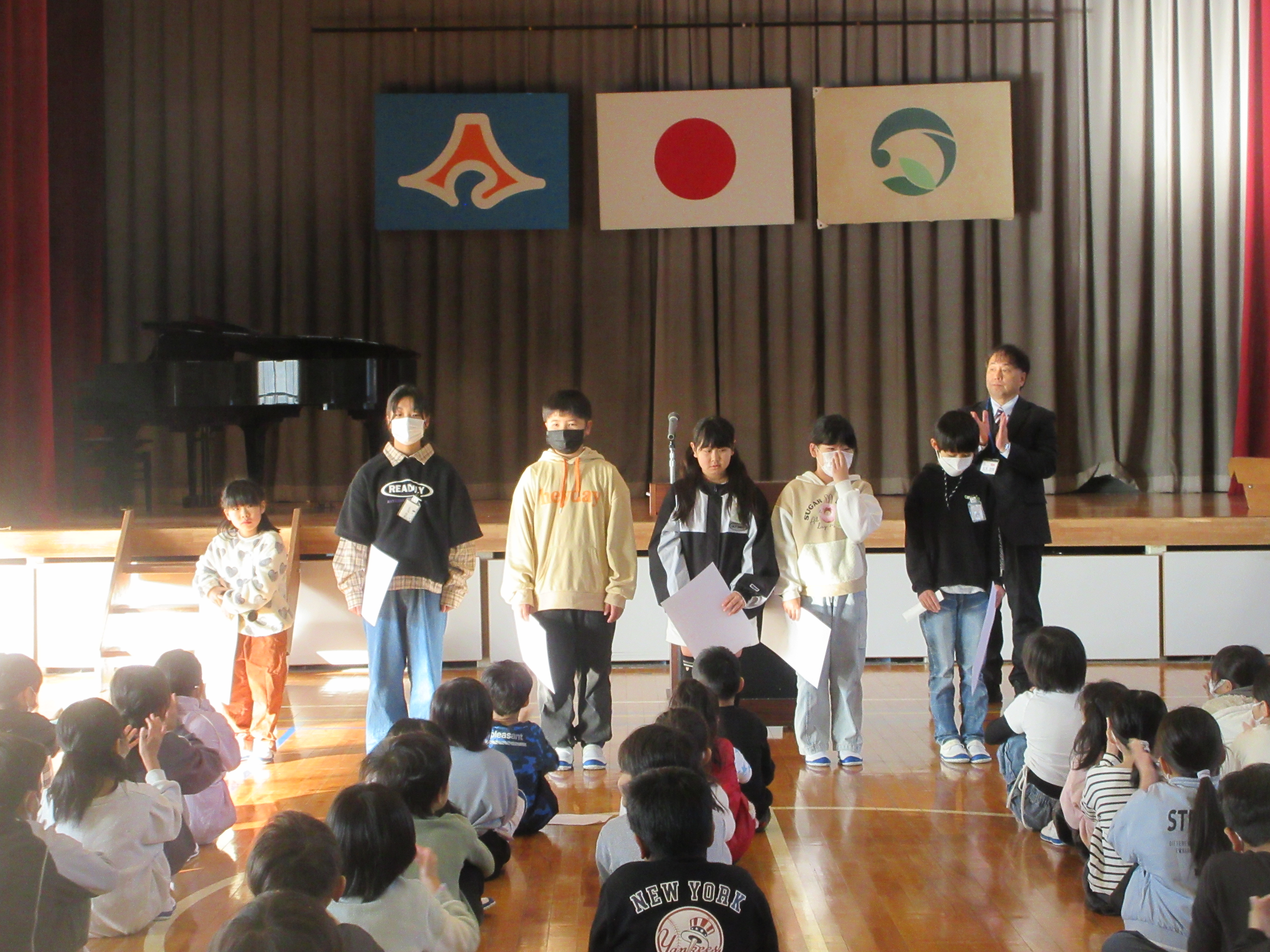読書感想画コンクール、席書コンクールなどの表彰を行いました。