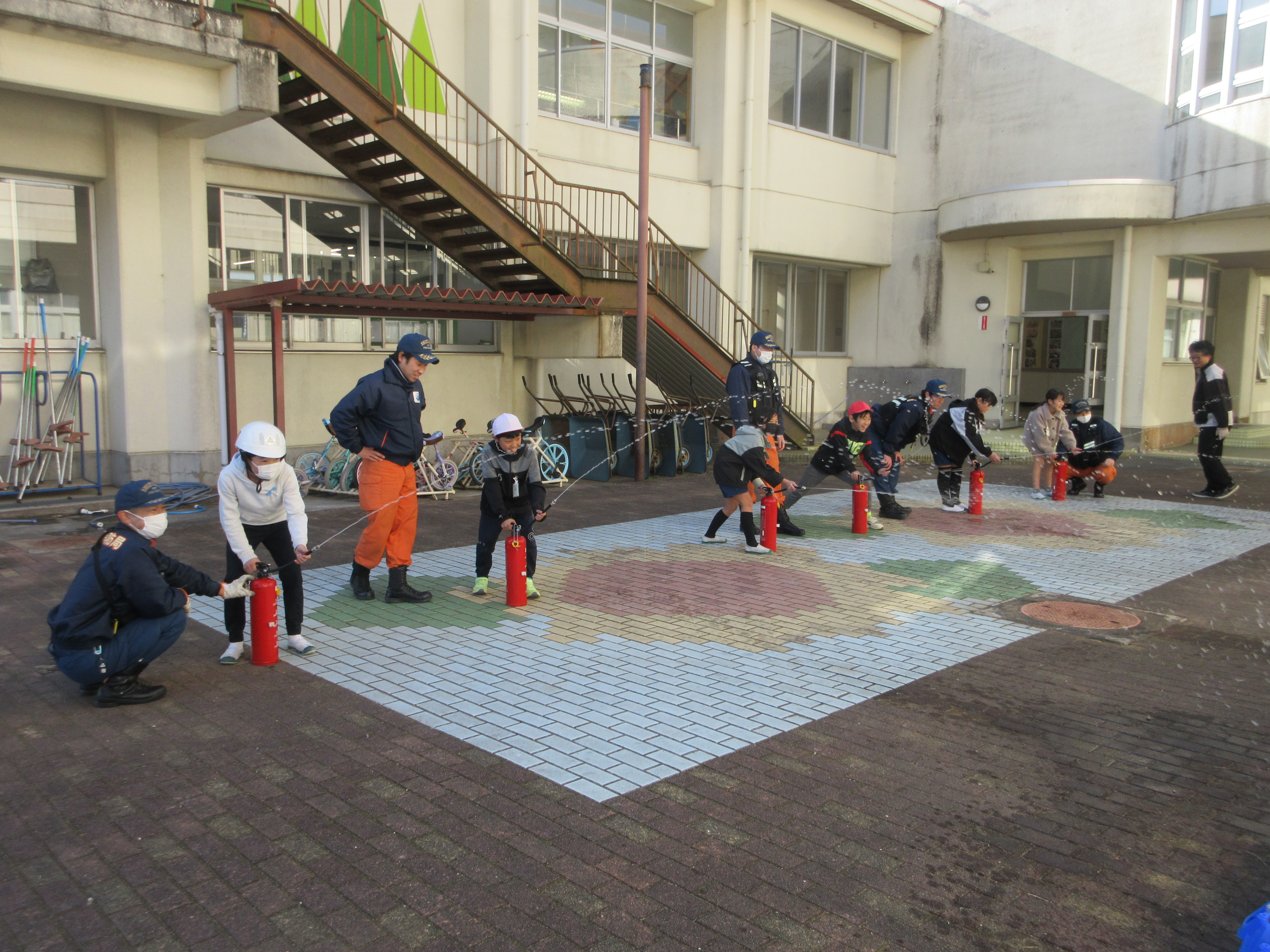 4~6年生は、消防署の皆様から消火器の使い方を教えていただきました。