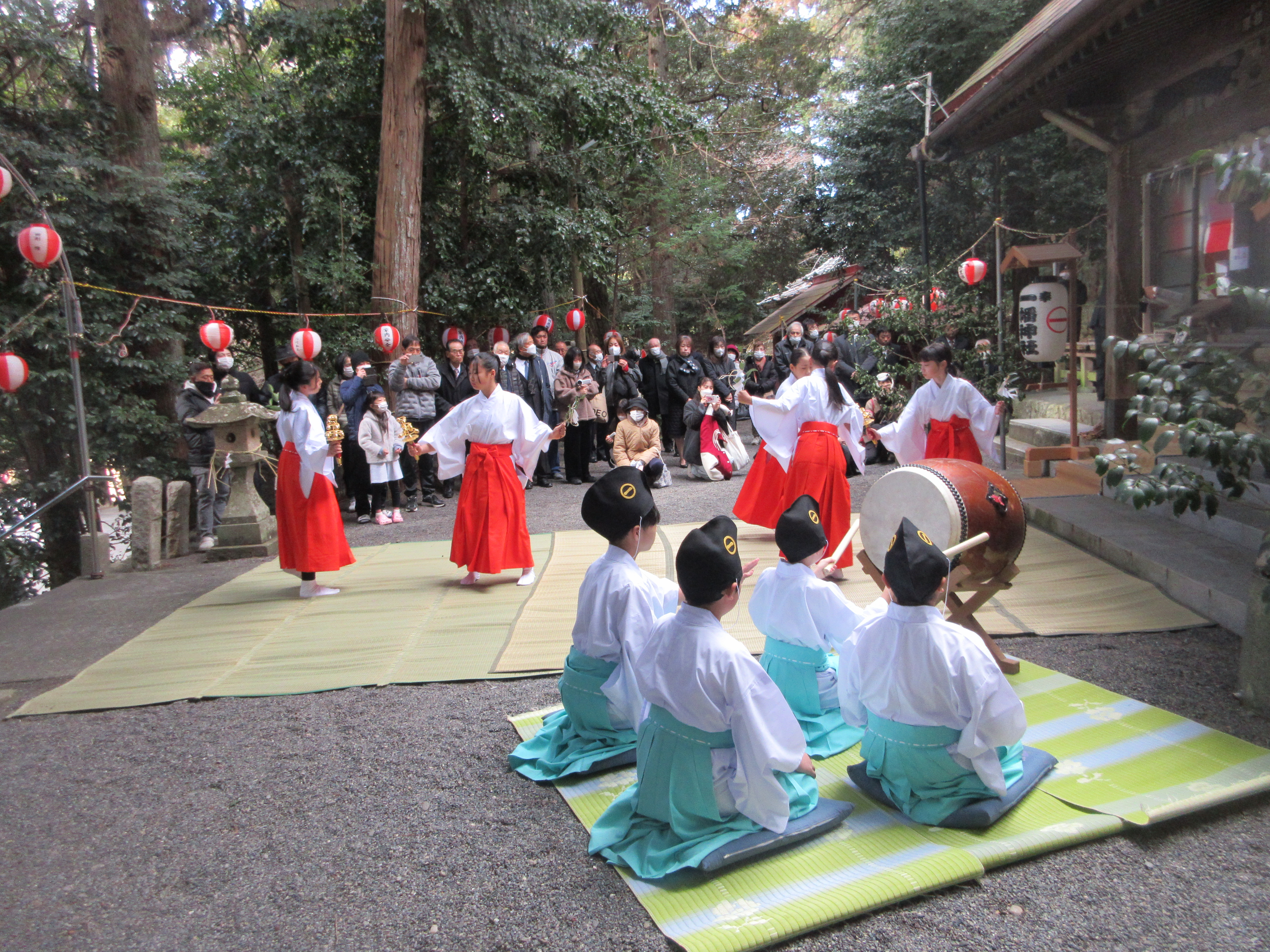 この伝統行事に、6年生、5年生の子供たちが参加し、舞やたいこを担当し、地域の方が見守る中、披露しました。前日に、おもちづくりに参加した子供たちも多かったと聞いています。