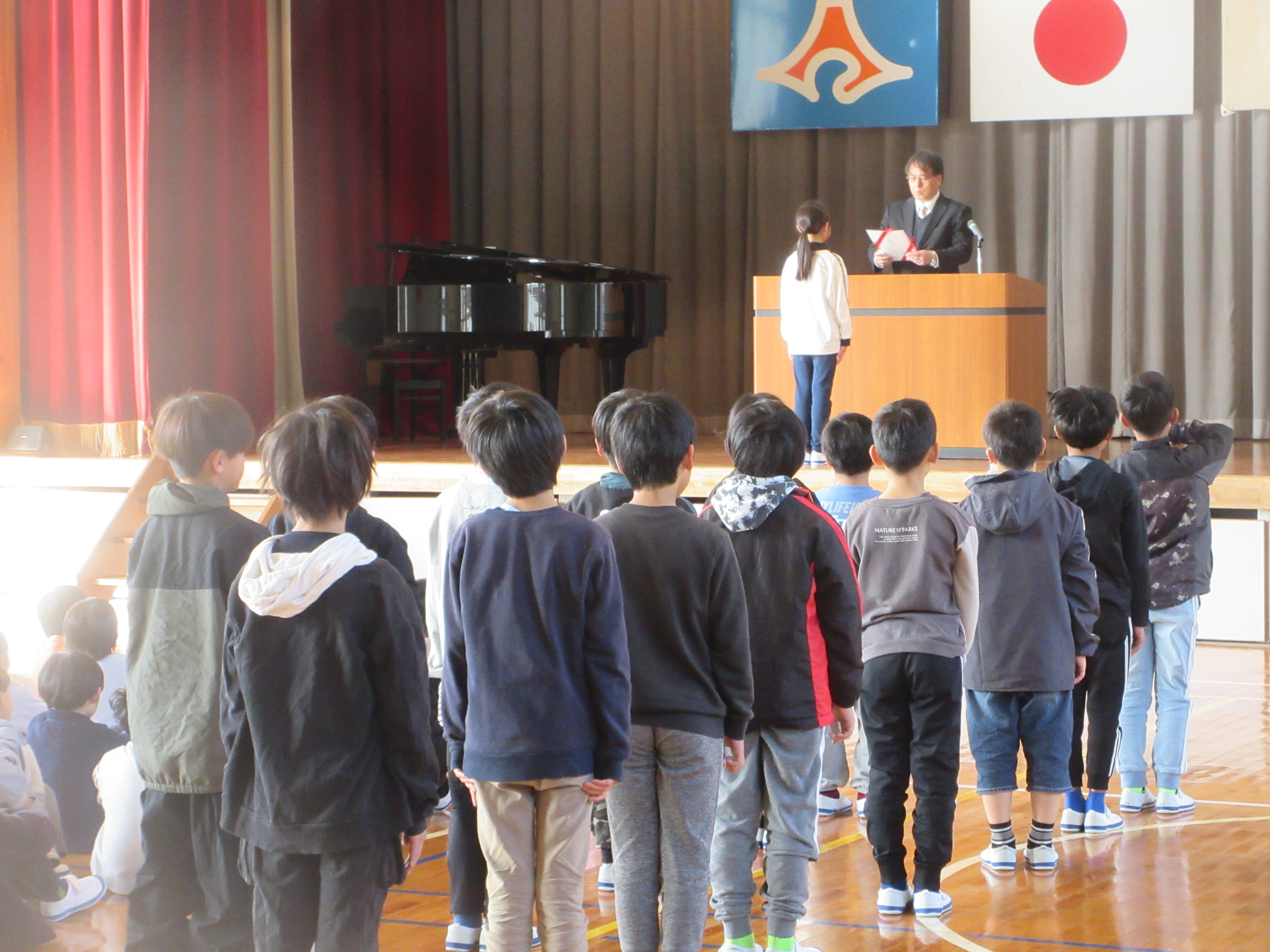この数週間、インフルエンザが流行し、最終日全員そろうことはできませんでしたが、重点目標「自分の考えを大切にできる子」に向け、どの児童も力を伸ばした1年でした。